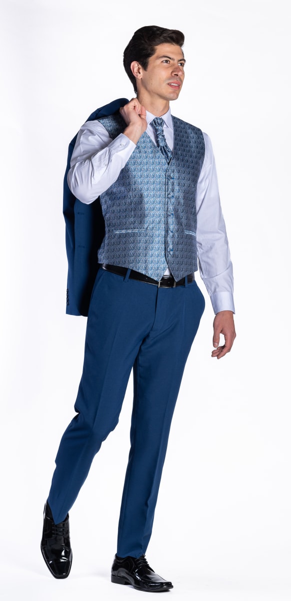 Traje básico ideal para toca ocasión, calce slim que puede ser usado con zapatillas, mocasines o calzado formal. Prenda dinámica que puedes combinar con diferentes tonos de colores en camisas y usar diversos accesorios. Un básico que no debe faltar en tu armario.