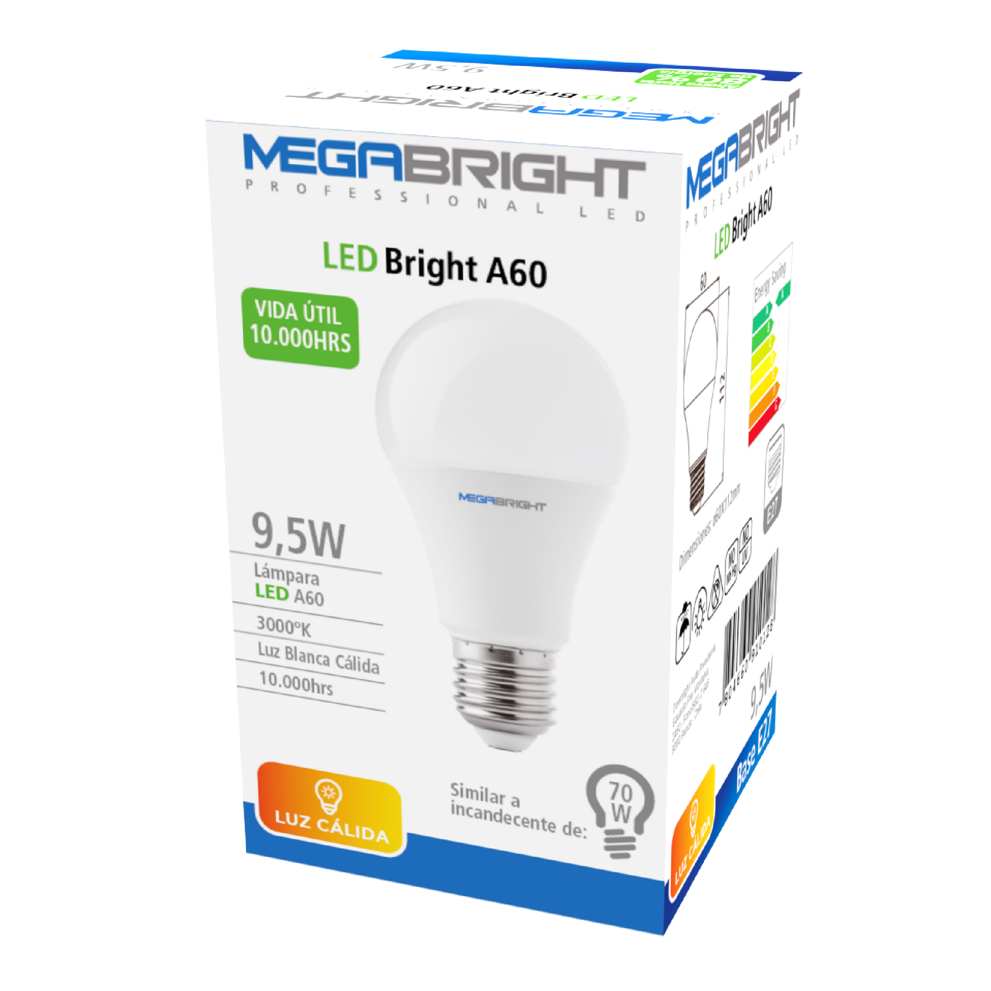 Ampolleta LED MEGABRIGHT A60 CLASICA 9,5W E-27