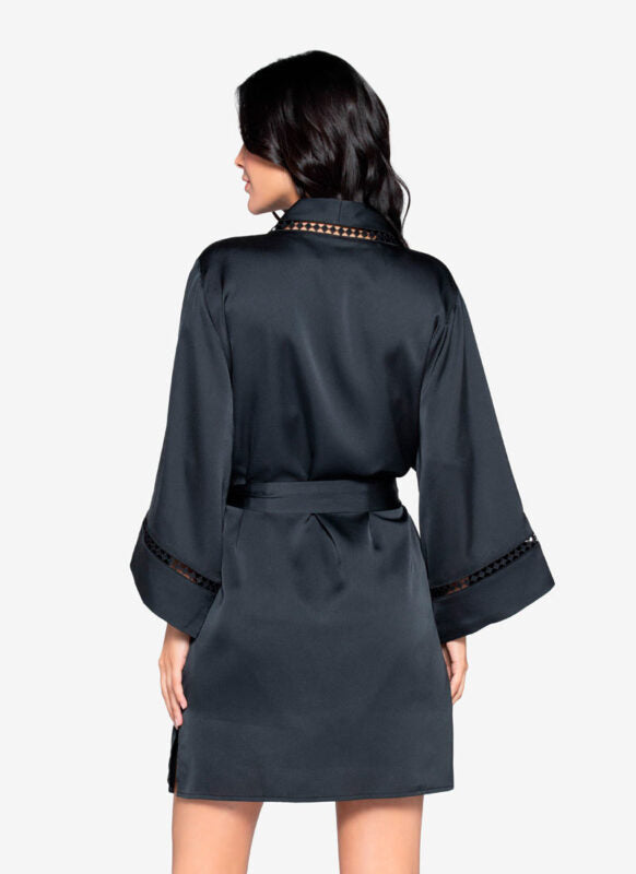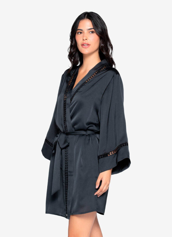 Bata de satín con acabado brillante y textura ultra suave, perfecta para envolver tu piel en comodidad. Su caída ligera y elegante la convierte en la compañera ideal para comenzar o terminar tus días.