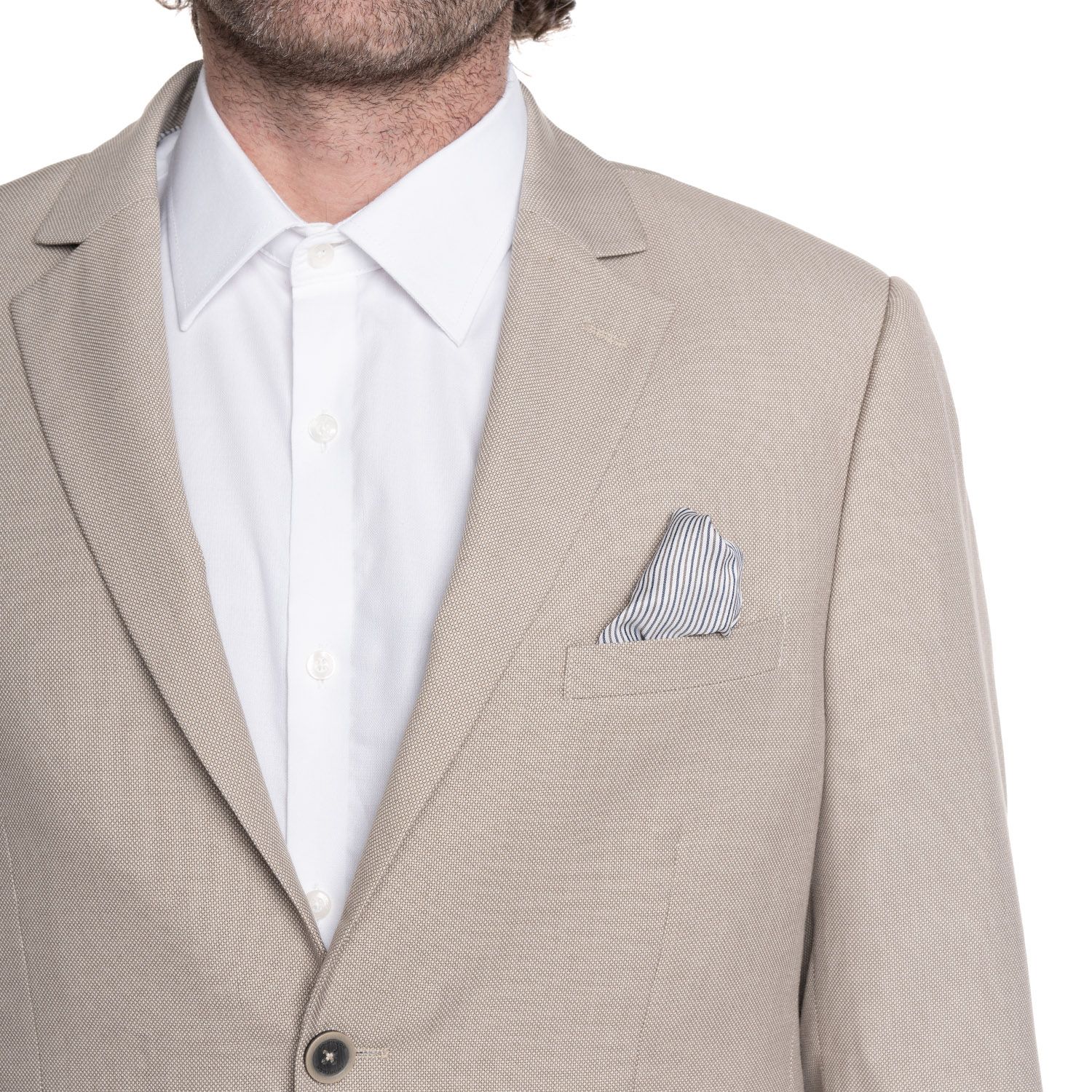 La textura sutil añade profundidad y sofisticación a tu outfit. Combínalo fácilmente con pantalones claros o en tonos neutros para un contraste que resalte tu estilo personal.