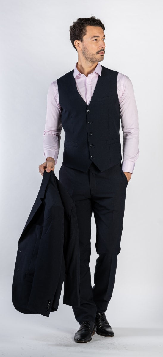 Su corte entallado y estructura ligera lo convierten en una prenda ideal para combinar con trajes o llevar sobre camisa en ocasiones semi-formales. El color azul marino, clásico y versátil, permite múltiples combinaciones y es una excelente elección para todo tipo de eventos, desde reuniones laborales hasta celebraciones especiales.