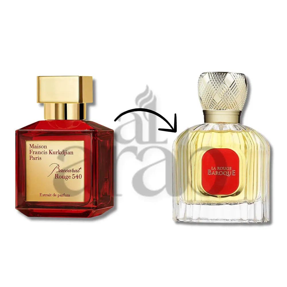 Baroque Rouge 540 de Maison Alhambra es una fragancia de la familia olfativa Oriental para Hombres y Mujeres. Baroque Rouge 540 se lanzó en 2021. Las Notas de Salida son azafrán, pera y mandarina; las Notas de Corazón son jazmín, ylang-ylang y azucena; las Notas de Fondo son madera de cachemira, ámbar y almizcle.