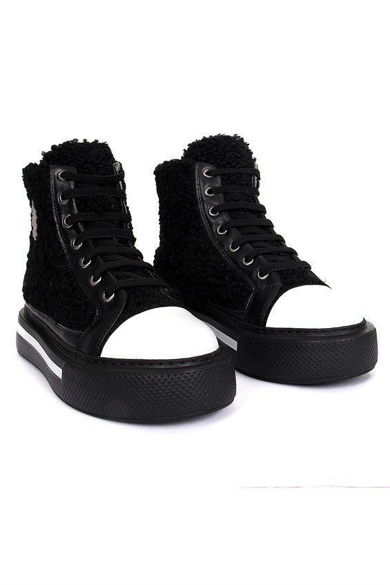 Zapatilla Odega en cuero, y piel estilo urbano CON INTERIOR EFECTO CORDERITO planta full confort en goma cierre cordones un esencial para esta temporada.