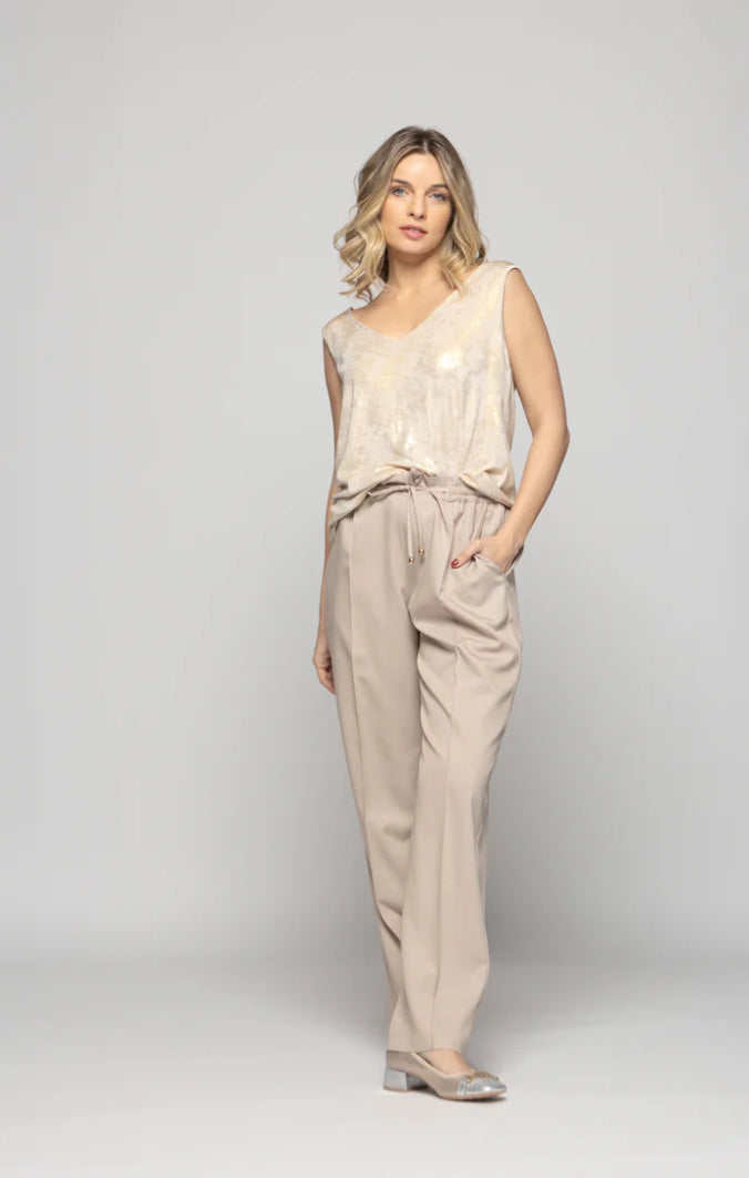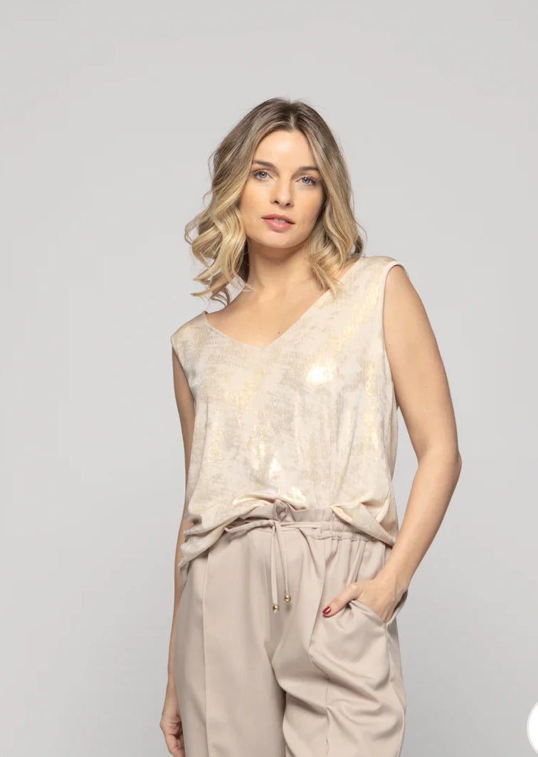 Polera Mujer Peonía Suelta Sin Mangas Efecto Brillante Beige Ludovica