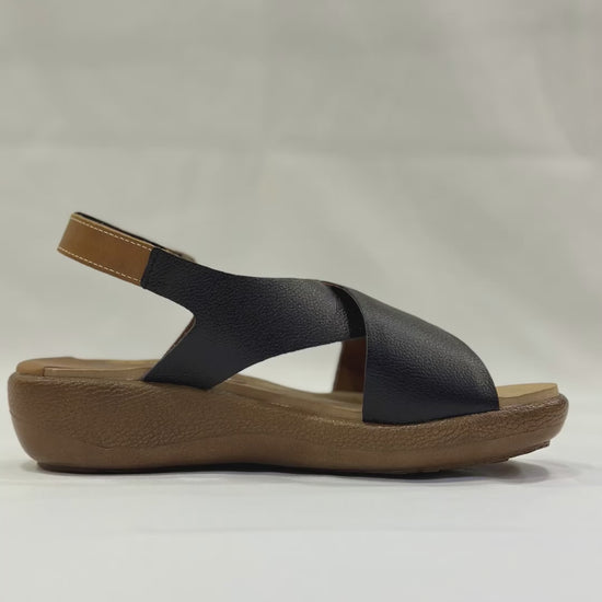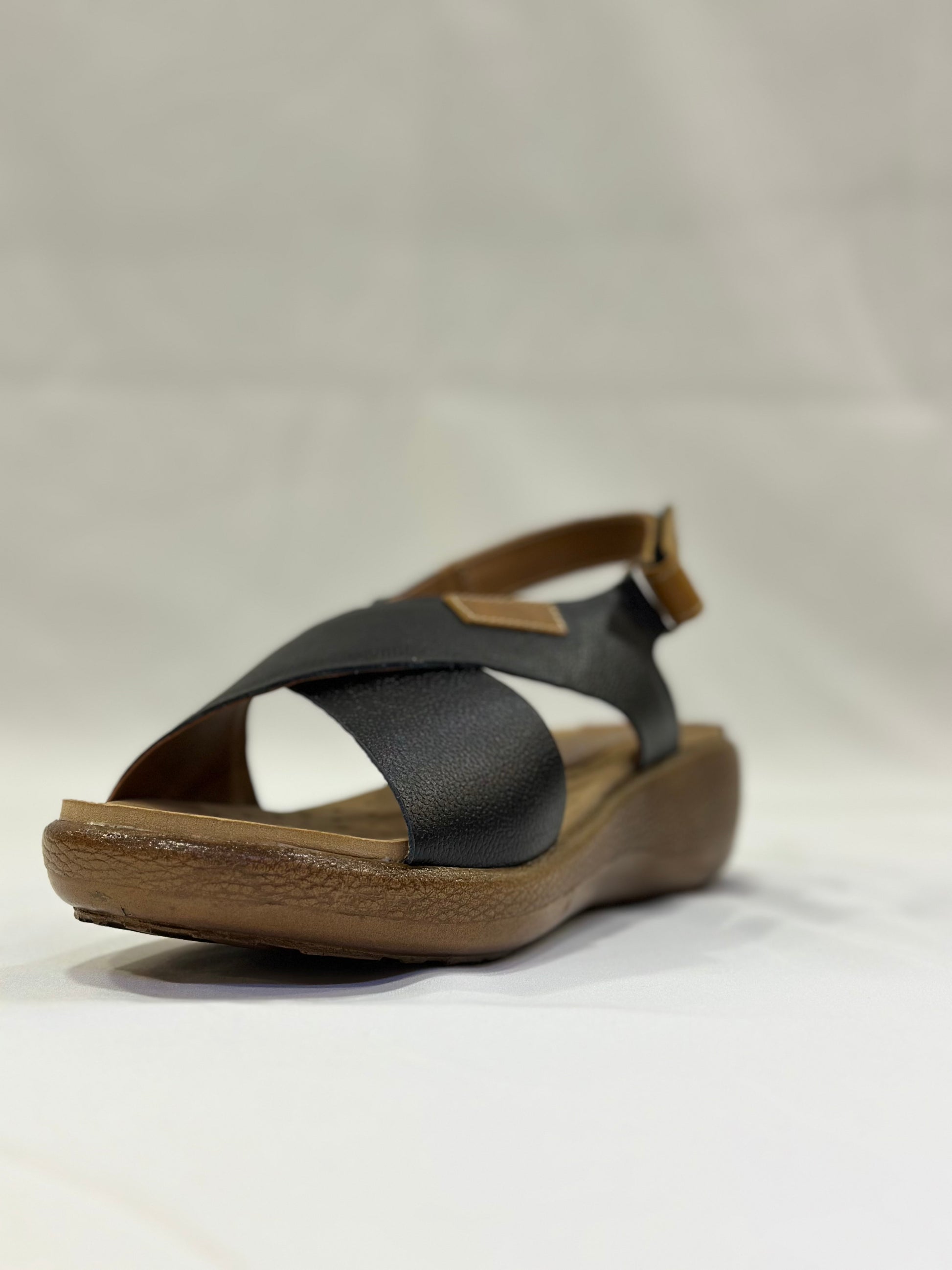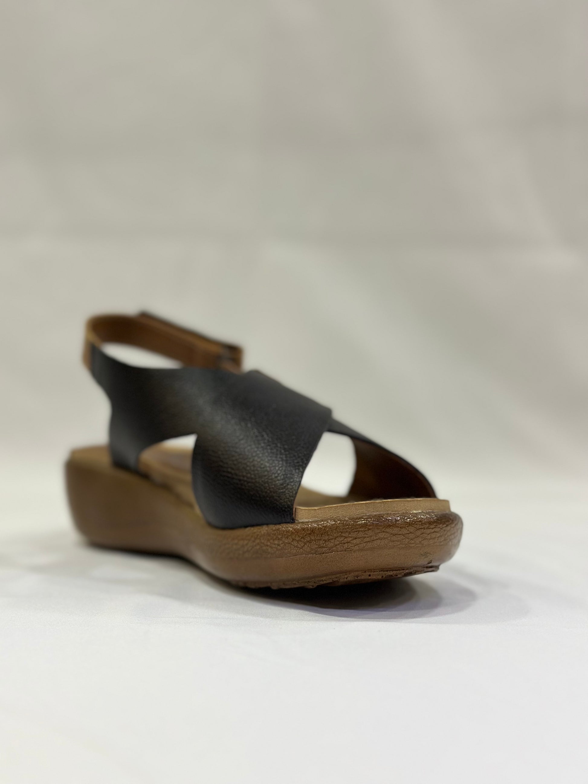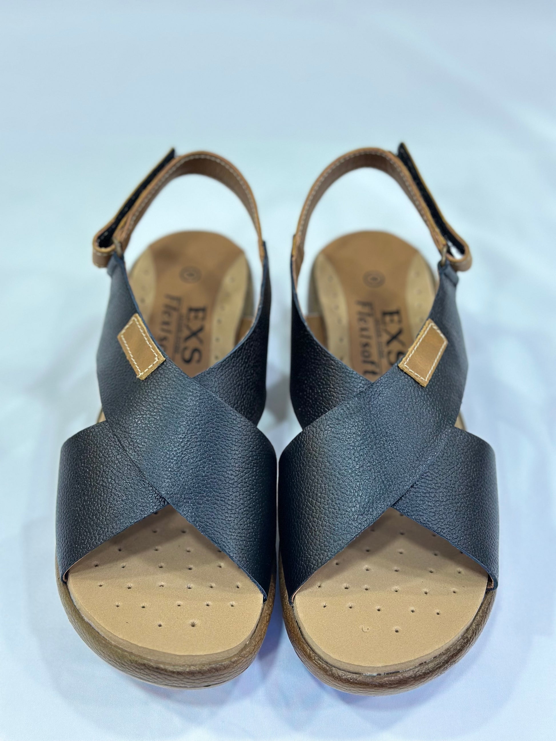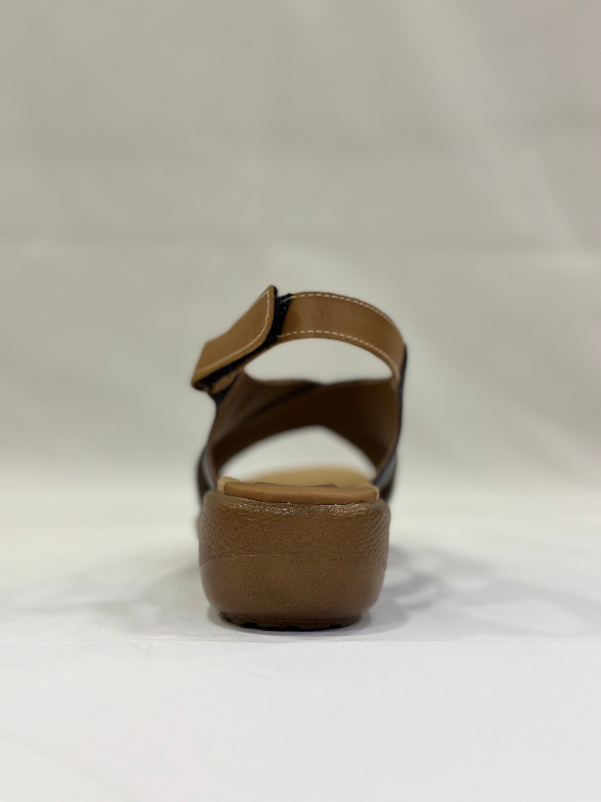Sandalia Jade en cuero color plateado combinación con ribetes ocre plantilla gel con confort indiscutible simplemente un esencial para esta temporada.