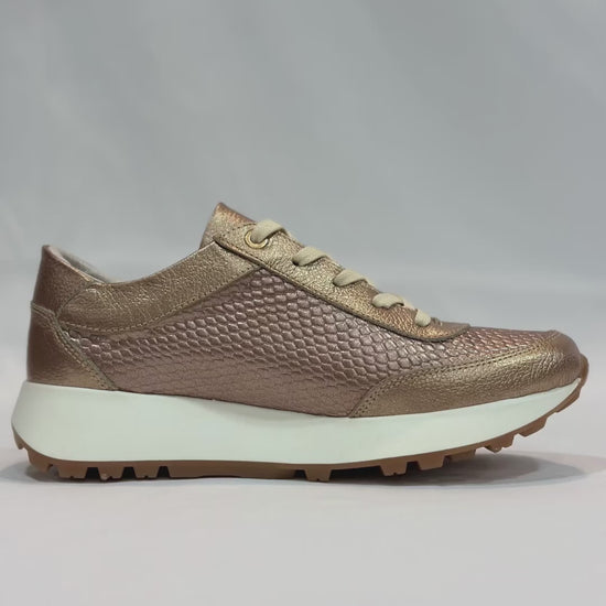 Zapatilla en cuero Fear combinación con ribetes champaña oro cuero texturado tipo pitón simplemente un esencial para esta temporada.