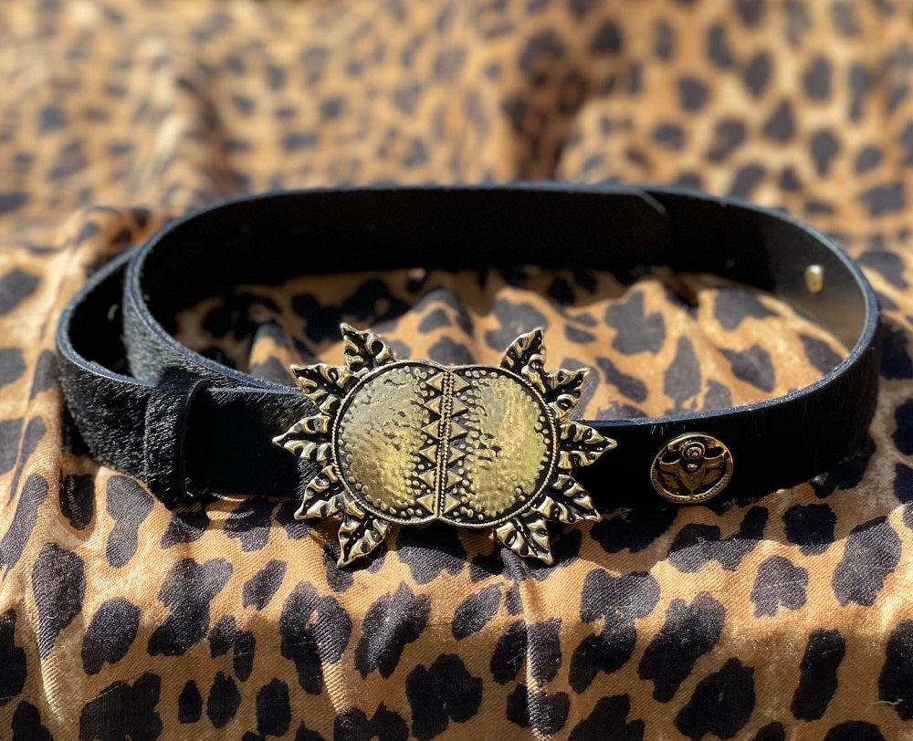 - 100% cuero bovino con pelo negro natural;