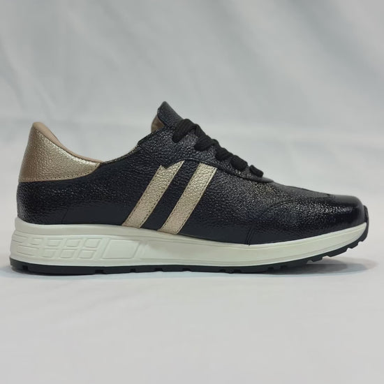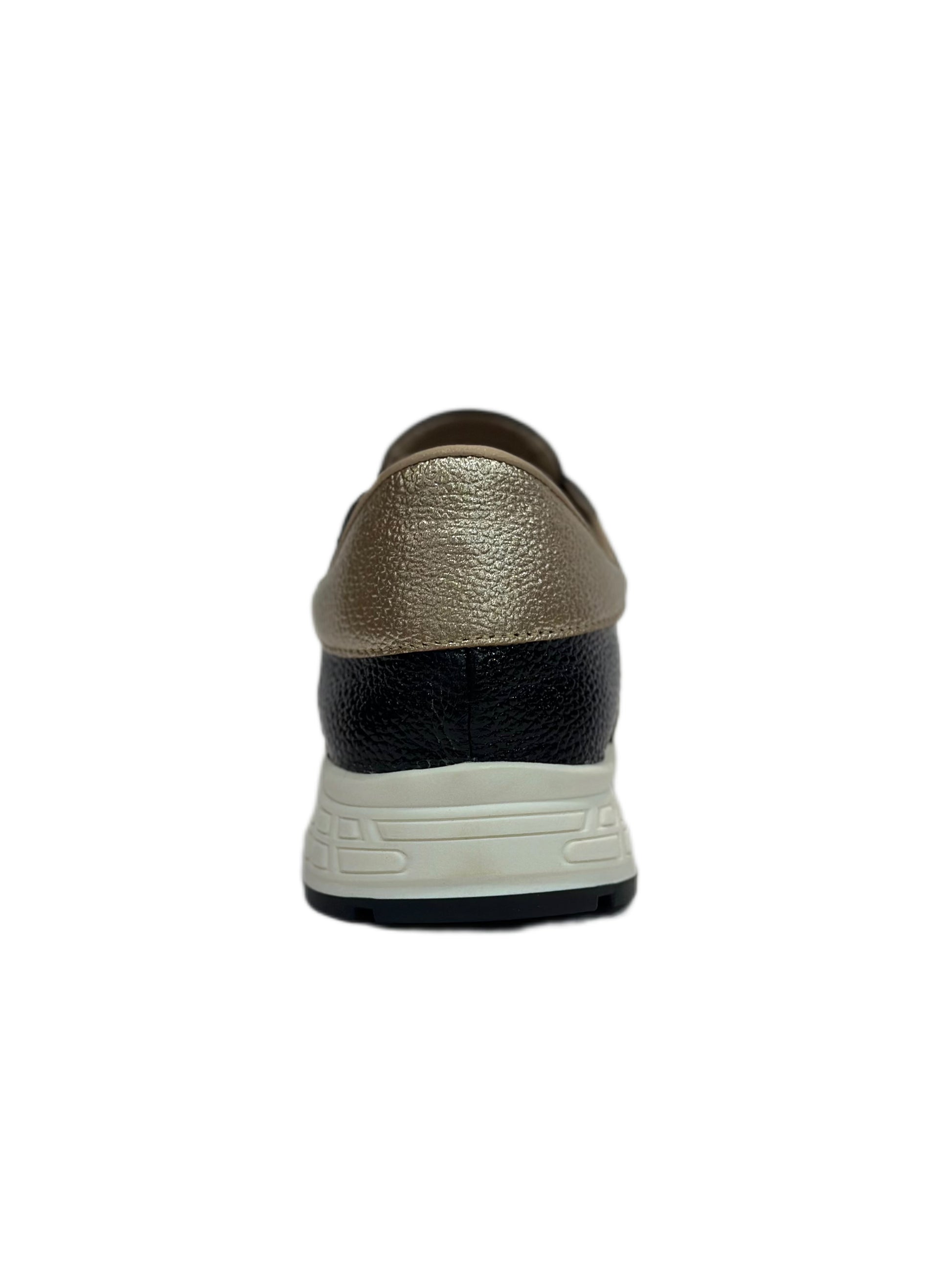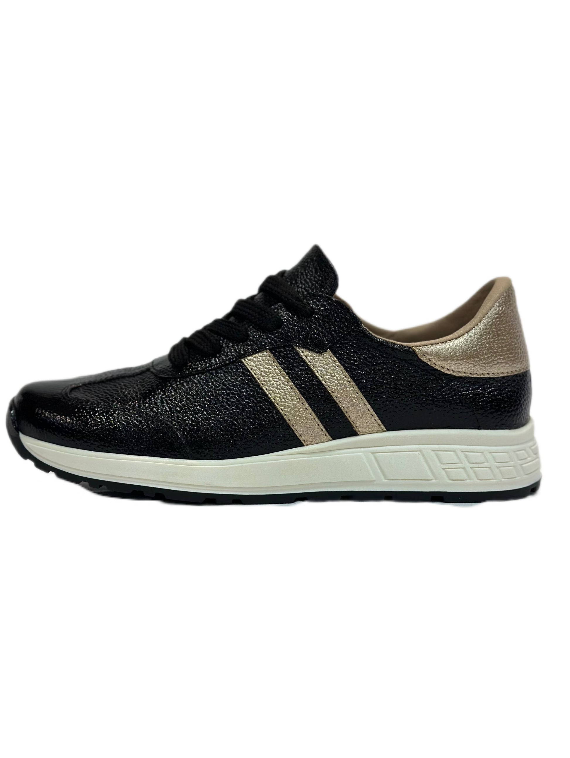 Zapatilla en cuero Clara combinación con cueros metalizados y cordones simplemente un esencial para esta temporada.
